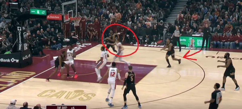 这一次也是同样的道理,在阿伦引导右侧的掩护下,泰森变向走左侧过掉了CC,从而吸引了活塞的防守收缩,